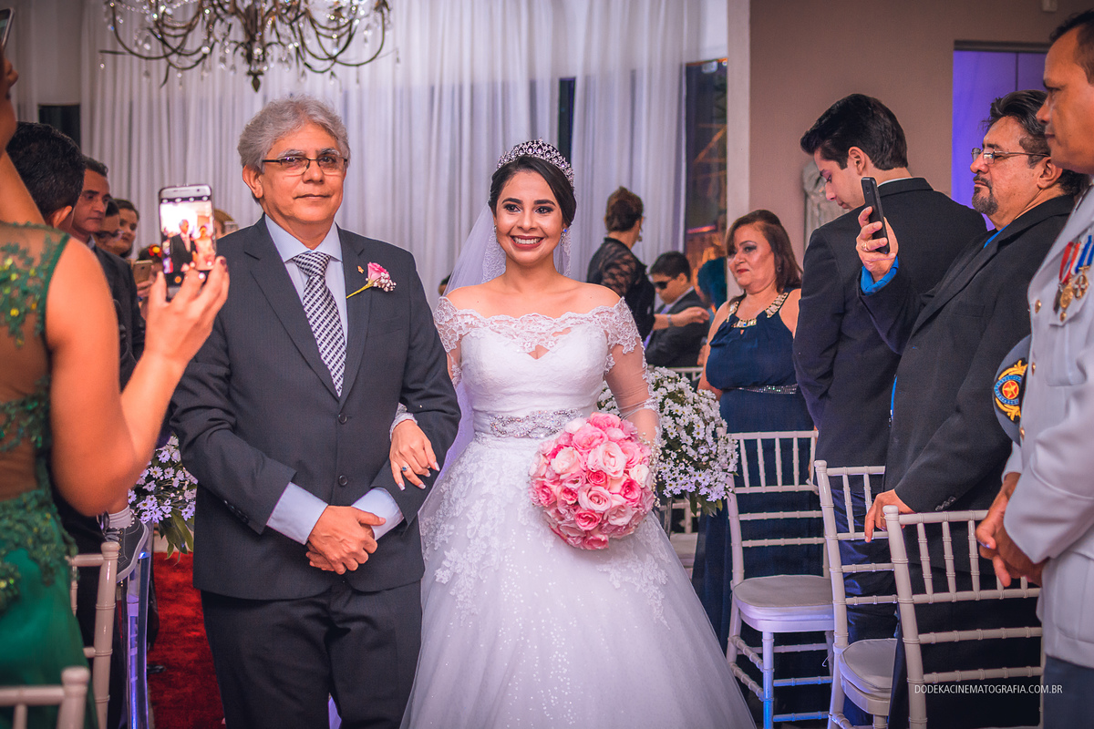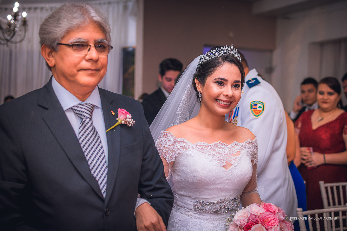 Fotografia de casamento em Manaus do enlace matrimonial de Patricia e Josimar. A entrada do da dama de honra