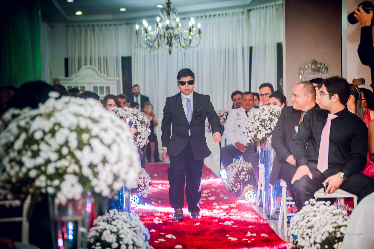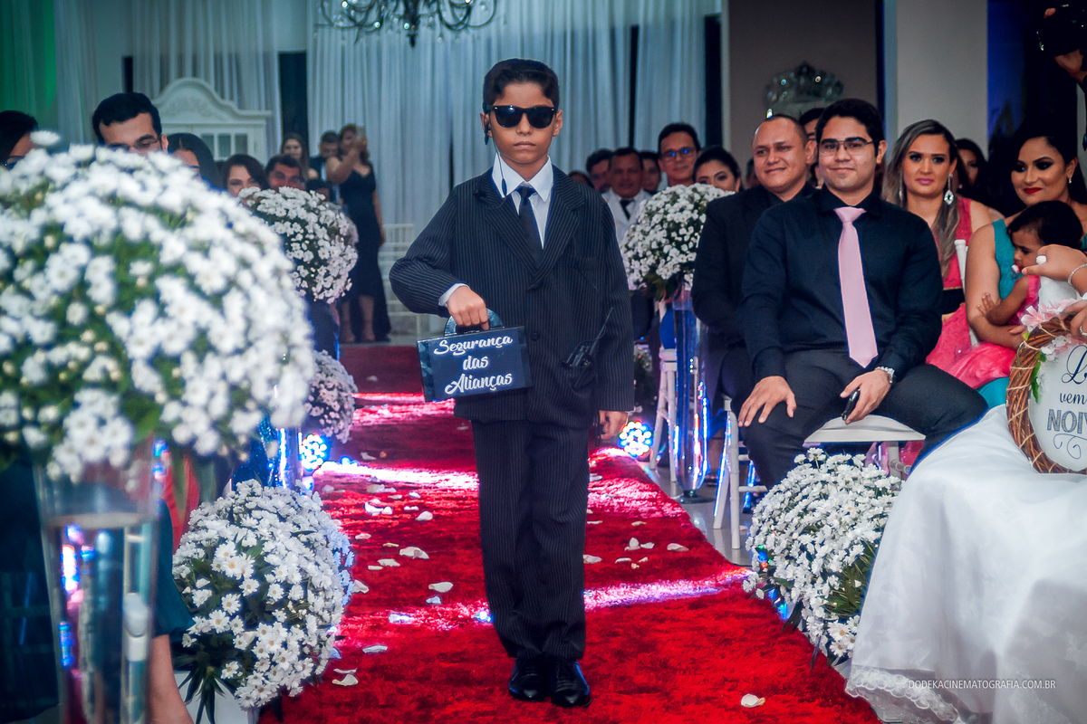 Fotografia de casamento em Manaus do enlace matrimonial de Patricia e Josimar. A entrada do Pagem com a Bíblia.